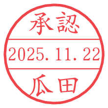 オプションの「電子透かし」をチェックし[生成]すると、見た目には分からないように、UNIXタイムスタンプを識別情報としてPNG形式の日付印に埋め込みます。 日付スタンプメーカーの使い方「部署」「名前」は最大8文字まで入力が可能です。「スタンプの色」を選択し、[生成]ボタン押下で印影画像が更新され、背景を透明に設定したPNG形式とPDF形式の印影画像がリンクからダウンロードできます。 オプションの「電子透かし」は、その性格上日付印ととても相性の良い付加サービスです。 別ページの「タイムスタンプと電子透かし」でも詳しく解説しますが、このオプションを追加することで、日付印が生成された日時に確かにその印が存在していることが証明されます。 ![]() 瓜田さんの電子印鑑が作れます。社内でのデータ書類閲覧確認用など、認印的な使い方のできる電子印鑑が作れます。 ![]() 古代文字で落款印が作れます。「落款スタンプメーカー」で作品を引き立たせる落款印が作れます。