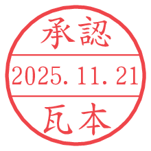 オプションの「電子透かし」をチェックし[生成]すると、見た目には分からないように、UNIXタイムスタンプを識別情報としてPNG形式の日付印に埋め込みます。 日付スタンプメーカーの使い方「部署」「名前」は最大8文字まで入力が可能です。「スタンプの色」を選択し、[生成]ボタン押下で印影画像が更新され、背景を透明に設定したPNG形式とPDF形式の印影画像がリンクからダウンロードできます。 オプションの「電子透かし」は、その性格上日付印ととても相性の良い付加サービスです。 別ページの「タイムスタンプと電子透かし」でも詳しく解説しますが、このオプションを追加することで、日付印が生成された日時に確かにその印が存在していることが証明されます。 ![]() 瓦本さんの電子印鑑が作れます。社内でのデータ書類閲覧確認用など、認印的な使い方のできる電子印鑑が作れます。 ![]() 古代文字で落款印が作れます。「落款スタンプメーカー」で作品を引き立たせる落款印が作れます。