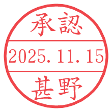 オプションの「電子透かし」をチェックし[生成]すると、見た目には分からないように、UNIXタイムスタンプを識別情報としてPNG形式の日付印に埋め込みます。 日付スタンプメーカーの使い方「部署」「名前」は最大8文字まで入力が可能です。「スタンプの色」を選択し、[生成]ボタン押下で印影画像が更新され、背景を透明に設定したPNG形式とPDF形式の印影画像がリンクからダウンロードできます。 オプションの「電子透かし」は、その性格上日付印ととても相性の良い付加サービスです。 別ページの「タイムスタンプと電子透かし」でも詳しく解説しますが、このオプションを追加することで、日付印が生成された日時に確かにその印が存在していることが証明されます。 ![]() 甚野さんの電子印鑑が作れます。社内でのデータ書類閲覧確認用など、認印的な使い方のできる電子印鑑が作れます。 ![]() 古代文字で落款印が作れます。「落款スタンプメーカー」で作品を引き立たせる落款印が作れます。