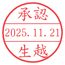 オプションの「電子透かし」をチェックし[生成]すると、見た目には分からないように、UNIXタイムスタンプを識別情報としてPNG形式の日付印に埋め込みます。 日付スタンプメーカーの使い方「部署」「名前」は最大8文字まで入力が可能です。「スタンプの色」を選択し、[生成]ボタン押下で印影画像が更新され、背景を透明に設定したPNG形式とPDF形式の印影画像がリンクからダウンロードできます。 オプションの「電子透かし」は、その性格上日付印ととても相性の良い付加サービスです。 別ページの「タイムスタンプと電子透かし」でも詳しく解説しますが、このオプションを追加することで、日付印が生成された日時に確かにその印が存在していることが証明されます。 ![]() 生越さんの電子印鑑が作れます。社内でのデータ書類閲覧確認用など、認印的な使い方のできる電子印鑑が作れます。 ![]() 古代文字で落款印が作れます。「落款スタンプメーカー」で作品を引き立たせる落款印が作れます。