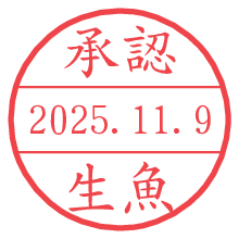 オプションの「電子透かし」をチェックし[生成]すると、見た目には分からないように、UNIXタイムスタンプを識別情報としてPNG形式の日付印に埋め込みます。 日付スタンプメーカーの使い方「部署」「名前」は最大8文字まで入力が可能です。「スタンプの色」を選択し、[生成]ボタン押下で印影画像が更新され、背景を透明に設定したPNG形式とPDF形式の印影画像がリンクからダウンロードできます。 オプションの「電子透かし」は、その性格上日付印ととても相性の良い付加サービスです。 別ページの「タイムスタンプと電子透かし」でも詳しく解説しますが、このオプションを追加することで、日付印が生成された日時に確かにその印が存在していることが証明されます。 ![]() 生魚さんの電子印鑑が作れます。社内でのデータ書類閲覧確認用など、認印的な使い方のできる電子印鑑が作れます。 ![]() 古代文字で落款印が作れます。「落款スタンプメーカー」で作品を引き立たせる落款印が作れます。