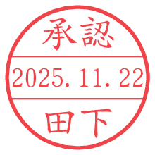 オプションの「電子透かし」をチェックし[生成]すると、見た目には分からないように、UNIXタイムスタンプを識別情報としてPNG形式の日付印に埋め込みます。 日付スタンプメーカーの使い方「部署」「名前」は最大8文字まで入力が可能です。「スタンプの色」を選択し、[生成]ボタン押下で印影画像が更新され、背景を透明に設定したPNG形式とPDF形式の印影画像がリンクからダウンロードできます。 オプションの「電子透かし」は、その性格上日付印ととても相性の良い付加サービスです。 別ページの「タイムスタンプと電子透かし」でも詳しく解説しますが、このオプションを追加することで、日付印が生成された日時に確かにその印が存在していることが証明されます。 ![]() 田下さんの電子印鑑が作れます。社内でのデータ書類閲覧確認用など、認印的な使い方のできる電子印鑑が作れます。 ![]() 古代文字で落款印が作れます。「落款スタンプメーカー」で作品を引き立たせる落款印が作れます。