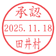 オプションの「電子透かし」をチェックし[生成]すると、見た目には分からないように、UNIXタイムスタンプを識別情報としてPNG形式の日付印に埋め込みます。 日付スタンプメーカーの使い方「部署」「名前」は最大8文字まで入力が可能です。「スタンプの色」を選択し、[生成]ボタン押下で印影画像が更新され、背景を透明に設定したPNG形式とPDF形式の印影画像がリンクからダウンロードできます。 オプションの「電子透かし」は、その性格上日付印ととても相性の良い付加サービスです。 別ページの「タイムスタンプと電子透かし」でも詳しく解説しますが、このオプションを追加することで、日付印が生成された日時に確かにその印が存在していることが証明されます。 ![]() 田井村さんの電子印鑑が作れます。社内でのデータ書類閲覧確認用など、認印的な使い方のできる電子印鑑が作れます。 ![]() 古代文字で落款印が作れます。「落款スタンプメーカー」で作品を引き立たせる落款印が作れます。