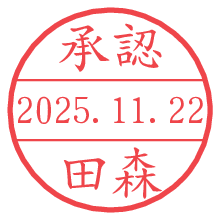 オプションの「電子透かし」をチェックし[生成]すると、見た目には分からないように、UNIXタイムスタンプを識別情報としてPNG形式の日付印に埋め込みます。 日付スタンプメーカーの使い方「部署」「名前」は最大8文字まで入力が可能です。「スタンプの色」を選択し、[生成]ボタン押下で印影画像が更新され、背景を透明に設定したPNG形式とPDF形式の印影画像がリンクからダウンロードできます。 オプションの「電子透かし」は、その性格上日付印ととても相性の良い付加サービスです。 別ページの「タイムスタンプと電子透かし」でも詳しく解説しますが、このオプションを追加することで、日付印が生成された日時に確かにその印が存在していることが証明されます。 ![]() 田森さんの電子印鑑が作れます。社内でのデータ書類閲覧確認用など、認印的な使い方のできる電子印鑑が作れます。 ![]() 古代文字で落款印が作れます。「落款スタンプメーカー」で作品を引き立たせる落款印が作れます。