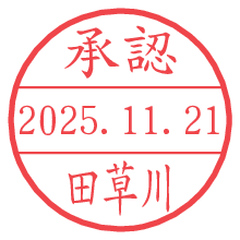 オプションの「電子透かし」をチェックし[生成]すると、見た目には分からないように、UNIXタイムスタンプを識別情報としてPNG形式の日付印に埋め込みます。 日付スタンプメーカーの使い方「部署」「名前」は最大8文字まで入力が可能です。「スタンプの色」を選択し、[生成]ボタン押下で印影画像が更新され、背景を透明に設定したPNG形式とPDF形式の印影画像がリンクからダウンロードできます。 オプションの「電子透かし」は、その性格上日付印ととても相性の良い付加サービスです。 別ページの「タイムスタンプと電子透かし」でも詳しく解説しますが、このオプションを追加することで、日付印が生成された日時に確かにその印が存在していることが証明されます。 ![]() 田草川さんの電子印鑑が作れます。社内でのデータ書類閲覧確認用など、認印的な使い方のできる電子印鑑が作れます。 ![]() 古代文字で落款印が作れます。「落款スタンプメーカー」で作品を引き立たせる落款印が作れます。