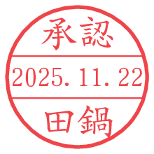 オプションの「電子透かし」をチェックし[生成]すると、見た目には分からないように、UNIXタイムスタンプを識別情報としてPNG形式の日付印に埋め込みます。 日付スタンプメーカーの使い方「部署」「名前」は最大8文字まで入力が可能です。「スタンプの色」を選択し、[生成]ボタン押下で印影画像が更新され、背景を透明に設定したPNG形式とPDF形式の印影画像がリンクからダウンロードできます。 オプションの「電子透かし」は、その性格上日付印ととても相性の良い付加サービスです。 別ページの「タイムスタンプと電子透かし」でも詳しく解説しますが、このオプションを追加することで、日付印が生成された日時に確かにその印が存在していることが証明されます。 ![]() 田鍋さんの電子印鑑が作れます。社内でのデータ書類閲覧確認用など、認印的な使い方のできる電子印鑑が作れます。 ![]() 古代文字で落款印が作れます。「落款スタンプメーカー」で作品を引き立たせる落款印が作れます。