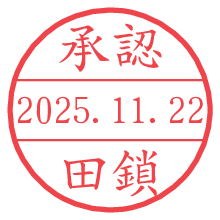 オプションの「電子透かし」をチェックし[生成]すると、見た目には分からないように、UNIXタイムスタンプを識別情報としてPNG形式の日付印に埋め込みます。 日付スタンプメーカーの使い方「部署」「名前」は最大8文字まで入力が可能です。「スタンプの色」を選択し、[生成]ボタン押下で印影画像が更新され、背景を透明に設定したPNG形式とPDF形式の印影画像がリンクからダウンロードできます。 オプションの「電子透かし」は、その性格上日付印ととても相性の良い付加サービスです。 別ページの「タイムスタンプと電子透かし」でも詳しく解説しますが、このオプションを追加することで、日付印が生成された日時に確かにその印が存在していることが証明されます。 ![]() 田鎖さんの電子印鑑が作れます。社内でのデータ書類閲覧確認用など、認印的な使い方のできる電子印鑑が作れます。 ![]() 古代文字で落款印が作れます。「落款スタンプメーカー」で作品を引き立たせる落款印が作れます。