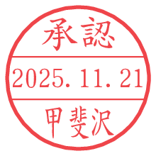 オプションの「電子透かし」をチェックし[生成]すると、見た目には分からないように、UNIXタイムスタンプを識別情報としてPNG形式の日付印に埋め込みます。 日付スタンプメーカーの使い方「部署」「名前」は最大8文字まで入力が可能です。「スタンプの色」を選択し、[生成]ボタン押下で印影画像が更新され、背景を透明に設定したPNG形式とPDF形式の印影画像がリンクからダウンロードできます。 オプションの「電子透かし」は、その性格上日付印ととても相性の良い付加サービスです。 別ページの「タイムスタンプと電子透かし」でも詳しく解説しますが、このオプションを追加することで、日付印が生成された日時に確かにその印が存在していることが証明されます。 ![]() 甲斐沢さんの電子印鑑が作れます。社内でのデータ書類閲覧確認用など、認印的な使い方のできる電子印鑑が作れます。 ![]() 古代文字で落款印が作れます。「落款スタンプメーカー」で作品を引き立たせる落款印が作れます。