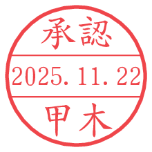オプションの「電子透かし」をチェックし[生成]すると、見た目には分からないように、UNIXタイムスタンプを識別情報としてPNG形式の日付印に埋め込みます。 日付スタンプメーカーの使い方「部署」「名前」は最大8文字まで入力が可能です。「スタンプの色」を選択し、[生成]ボタン押下で印影画像が更新され、背景を透明に設定したPNG形式とPDF形式の印影画像がリンクからダウンロードできます。 オプションの「電子透かし」は、その性格上日付印ととても相性の良い付加サービスです。 別ページの「タイムスタンプと電子透かし」でも詳しく解説しますが、このオプションを追加することで、日付印が生成された日時に確かにその印が存在していることが証明されます。 ![]() 甲木さんの電子印鑑が作れます。社内でのデータ書類閲覧確認用など、認印的な使い方のできる電子印鑑が作れます。 ![]() 古代文字で落款印が作れます。「落款スタンプメーカー」で作品を引き立たせる落款印が作れます。