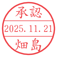 オプションの「電子透かし」をチェックし[生成]すると、見た目には分からないように、UNIXタイムスタンプを識別情報としてPNG形式の日付印に埋め込みます。 日付スタンプメーカーの使い方「部署」「名前」は最大8文字まで入力が可能です。「スタンプの色」を選択し、[生成]ボタン押下で印影画像が更新され、背景を透明に設定したPNG形式とPDF形式の印影画像がリンクからダウンロードできます。 オプションの「電子透かし」は、その性格上日付印ととても相性の良い付加サービスです。 別ページの「タイムスタンプと電子透かし」でも詳しく解説しますが、このオプションを追加することで、日付印が生成された日時に確かにその印が存在していることが証明されます。 ![]() 畑島さんの電子印鑑が作れます。社内でのデータ書類閲覧確認用など、認印的な使い方のできる電子印鑑が作れます。 ![]() 古代文字で落款印が作れます。「落款スタンプメーカー」で作品を引き立たせる落款印が作れます。
