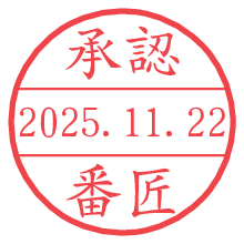 オプションの「電子透かし」をチェックし[生成]すると、見た目には分からないように、UNIXタイムスタンプを識別情報としてPNG形式の日付印に埋め込みます。 日付スタンプメーカーの使い方「部署」「名前」は最大8文字まで入力が可能です。「スタンプの色」を選択し、[生成]ボタン押下で印影画像が更新され、背景を透明に設定したPNG形式とPDF形式の印影画像がリンクからダウンロードできます。 オプションの「電子透かし」は、その性格上日付印ととても相性の良い付加サービスです。 別ページの「タイムスタンプと電子透かし」でも詳しく解説しますが、このオプションを追加することで、日付印が生成された日時に確かにその印が存在していることが証明されます。 ![]() 番匠さんの電子印鑑が作れます。社内でのデータ書類閲覧確認用など、認印的な使い方のできる電子印鑑が作れます。 ![]() 古代文字で落款印が作れます。「落款スタンプメーカー」で作品を引き立たせる落款印が作れます。