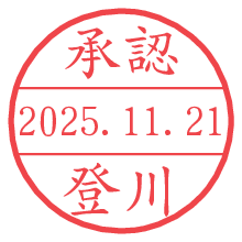 オプションの「電子透かし」をチェックし[生成]すると、見た目には分からないように、UNIXタイムスタンプを識別情報としてPNG形式の日付印に埋め込みます。 日付スタンプメーカーの使い方「部署」「名前」は最大8文字まで入力が可能です。「スタンプの色」を選択し、[生成]ボタン押下で印影画像が更新され、背景を透明に設定したPNG形式とPDF形式の印影画像がリンクからダウンロードできます。 オプションの「電子透かし」は、その性格上日付印ととても相性の良い付加サービスです。 別ページの「タイムスタンプと電子透かし」でも詳しく解説しますが、このオプションを追加することで、日付印が生成された日時に確かにその印が存在していることが証明されます。 ![]() 登川さんの電子印鑑が作れます。社内でのデータ書類閲覧確認用など、認印的な使い方のできる電子印鑑が作れます。 ![]() 古代文字で落款印が作れます。「落款スタンプメーカー」で作品を引き立たせる落款印が作れます。