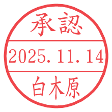 オプションの「電子透かし」をチェックし[生成]すると、見た目には分からないように、UNIXタイムスタンプを識別情報としてPNG形式の日付印に埋め込みます。 日付スタンプメーカーの使い方「部署」「名前」は最大8文字まで入力が可能です。「スタンプの色」を選択し、[生成]ボタン押下で印影画像が更新され、背景を透明に設定したPNG形式とPDF形式の印影画像がリンクからダウンロードできます。 オプションの「電子透かし」は、その性格上日付印ととても相性の良い付加サービスです。 別ページの「タイムスタンプと電子透かし」でも詳しく解説しますが、このオプションを追加することで、日付印が生成された日時に確かにその印が存在していることが証明されます。 ![]() 白木原さんの電子印鑑が作れます。社内でのデータ書類閲覧確認用など、認印的な使い方のできる電子印鑑が作れます。 ![]() 古代文字で落款印が作れます。「落款スタンプメーカー」で作品を引き立たせる落款印が作れます。