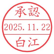 オプションの「電子透かし」をチェックし[生成]すると、見た目には分からないように、UNIXタイムスタンプを識別情報としてPNG形式の日付印に埋め込みます。 日付スタンプメーカーの使い方「部署」「名前」は最大8文字まで入力が可能です。「スタンプの色」を選択し、[生成]ボタン押下で印影画像が更新され、背景を透明に設定したPNG形式とPDF形式の印影画像がリンクからダウンロードできます。 オプションの「電子透かし」は、その性格上日付印ととても相性の良い付加サービスです。 別ページの「タイムスタンプと電子透かし」でも詳しく解説しますが、このオプションを追加することで、日付印が生成された日時に確かにその印が存在していることが証明されます。 ![]() 白江さんの電子印鑑が作れます。社内でのデータ書類閲覧確認用など、認印的な使い方のできる電子印鑑が作れます。 ![]() 古代文字で落款印が作れます。「落款スタンプメーカー」で作品を引き立たせる落款印が作れます。
