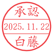 オプションの「電子透かし」をチェックし[生成]すると、見た目には分からないように、UNIXタイムスタンプを識別情報としてPNG形式の日付印に埋め込みます。 日付スタンプメーカーの使い方「部署」「名前」は最大8文字まで入力が可能です。「スタンプの色」を選択し、[生成]ボタン押下で印影画像が更新され、背景を透明に設定したPNG形式とPDF形式の印影画像がリンクからダウンロードできます。 オプションの「電子透かし」は、その性格上日付印ととても相性の良い付加サービスです。 別ページの「タイムスタンプと電子透かし」でも詳しく解説しますが、このオプションを追加することで、日付印が生成された日時に確かにその印が存在していることが証明されます。 ![]() 白藤さんの電子印鑑が作れます。社内でのデータ書類閲覧確認用など、認印的な使い方のできる電子印鑑が作れます。 ![]() 古代文字で落款印が作れます。「落款スタンプメーカー」で作品を引き立たせる落款印が作れます。