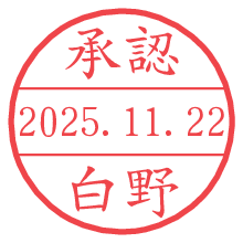 オプションの「電子透かし」をチェックし[生成]すると、見た目には分からないように、UNIXタイムスタンプを識別情報としてPNG形式の日付印に埋め込みます。 日付スタンプメーカーの使い方「部署」「名前」は最大8文字まで入力が可能です。「スタンプの色」を選択し、[生成]ボタン押下で印影画像が更新され、背景を透明に設定したPNG形式とPDF形式の印影画像がリンクからダウンロードできます。 オプションの「電子透かし」は、その性格上日付印ととても相性の良い付加サービスです。 別ページの「タイムスタンプと電子透かし」でも詳しく解説しますが、このオプションを追加することで、日付印が生成された日時に確かにその印が存在していることが証明されます。 ![]() 白野さんの電子印鑑が作れます。社内でのデータ書類閲覧確認用など、認印的な使い方のできる電子印鑑が作れます。 ![]() 古代文字で落款印が作れます。「落款スタンプメーカー」で作品を引き立たせる落款印が作れます。