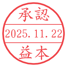 オプションの「電子透かし」をチェックし[生成]すると、見た目には分からないように、UNIXタイムスタンプを識別情報としてPNG形式の日付印に埋め込みます。 日付スタンプメーカーの使い方「部署」「名前」は最大8文字まで入力が可能です。「スタンプの色」を選択し、[生成]ボタン押下で印影画像が更新され、背景を透明に設定したPNG形式とPDF形式の印影画像がリンクからダウンロードできます。 オプションの「電子透かし」は、その性格上日付印ととても相性の良い付加サービスです。 別ページの「タイムスタンプと電子透かし」でも詳しく解説しますが、このオプションを追加することで、日付印が生成された日時に確かにその印が存在していることが証明されます。 ![]() 益本さんの電子印鑑が作れます。社内でのデータ書類閲覧確認用など、認印的な使い方のできる電子印鑑が作れます。 ![]() 古代文字で落款印が作れます。「落款スタンプメーカー」で作品を引き立たせる落款印が作れます。