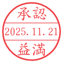 オプションの「電子透かし」をチェックし[生成]すると、見た目には分からないように、UNIXタイムスタンプを識別情報としてPNG形式の日付印に埋め込みます。 日付スタンプメーカーの使い方「部署」「名前」は最大8文字まで入力が可能です。「スタンプの色」を選択し、[生成]ボタン押下で印影画像が更新され、背景を透明に設定したPNG形式とPDF形式の印影画像がリンクからダウンロードできます。 オプションの「電子透かし」は、その性格上日付印ととても相性の良い付加サービスです。 別ページの「タイムスタンプと電子透かし」でも詳しく解説しますが、このオプションを追加することで、日付印が生成された日時に確かにその印が存在していることが証明されます。 ![]() 益満さんの電子印鑑が作れます。社内でのデータ書類閲覧確認用など、認印的な使い方のできる電子印鑑が作れます。 ![]() 古代文字で落款印が作れます。「落款スタンプメーカー」で作品を引き立たせる落款印が作れます。