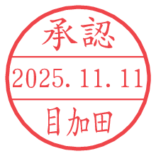 オプションの「電子透かし」をチェックし[生成]すると、見た目には分からないように、UNIXタイムスタンプを識別情報としてPNG形式の日付印に埋め込みます。 日付スタンプメーカーの使い方「部署」「名前」は最大8文字まで入力が可能です。「スタンプの色」を選択し、[生成]ボタン押下で印影画像が更新され、背景を透明に設定したPNG形式とPDF形式の印影画像がリンクからダウンロードできます。 オプションの「電子透かし」は、その性格上日付印ととても相性の良い付加サービスです。 別ページの「タイムスタンプと電子透かし」でも詳しく解説しますが、このオプションを追加することで、日付印が生成された日時に確かにその印が存在していることが証明されます。 ![]() 目加田さんの電子印鑑が作れます。社内でのデータ書類閲覧確認用など、認印的な使い方のできる電子印鑑が作れます。 ![]() 古代文字で落款印が作れます。「落款スタンプメーカー」で作品を引き立たせる落款印が作れます。