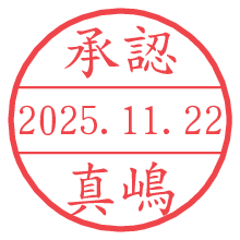 オプションの「電子透かし」をチェックし[生成]すると、見た目には分からないように、UNIXタイムスタンプを識別情報としてPNG形式の日付印に埋め込みます。 日付スタンプメーカーの使い方「部署」「名前」は最大8文字まで入力が可能です。「スタンプの色」を選択し、[生成]ボタン押下で印影画像が更新され、背景を透明に設定したPNG形式とPDF形式の印影画像がリンクからダウンロードできます。 オプションの「電子透かし」は、その性格上日付印ととても相性の良い付加サービスです。 別ページの「タイムスタンプと電子透かし」でも詳しく解説しますが、このオプションを追加することで、日付印が生成された日時に確かにその印が存在していることが証明されます。 ![]() 真嶋さんの電子印鑑が作れます。社内でのデータ書類閲覧確認用など、認印的な使い方のできる電子印鑑が作れます。 ![]() 古代文字で落款印が作れます。「落款スタンプメーカー」で作品を引き立たせる落款印が作れます。