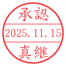 オプションの「電子透かし」をチェックし[生成]すると、見た目には分からないように、UNIXタイムスタンプを識別情報としてPNG形式の日付印に埋め込みます。 日付スタンプメーカーの使い方「部署」「名前」は最大8文字まで入力が可能です。「スタンプの色」を選択し、[生成]ボタン押下で印影画像が更新され、背景を透明に設定したPNG形式とPDF形式の印影画像がリンクからダウンロードできます。 オプションの「電子透かし」は、その性格上日付印ととても相性の良い付加サービスです。 別ページの「タイムスタンプと電子透かし」でも詳しく解説しますが、このオプションを追加することで、日付印が生成された日時に確かにその印が存在していることが証明されます。 ![]() 真継さんの電子印鑑が作れます。社内でのデータ書類閲覧確認用など、認印的な使い方のできる電子印鑑が作れます。 ![]() 古代文字で落款印が作れます。「落款スタンプメーカー」で作品を引き立たせる落款印が作れます。