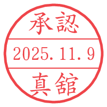 オプションの「電子透かし」をチェックし[生成]すると、見た目には分からないように、UNIXタイムスタンプを識別情報としてPNG形式の日付印に埋め込みます。 日付スタンプメーカーの使い方「部署」「名前」は最大8文字まで入力が可能です。「スタンプの色」を選択し、[生成]ボタン押下で印影画像が更新され、背景を透明に設定したPNG形式とPDF形式の印影画像がリンクからダウンロードできます。 オプションの「電子透かし」は、その性格上日付印ととても相性の良い付加サービスです。 別ページの「タイムスタンプと電子透かし」でも詳しく解説しますが、このオプションを追加することで、日付印が生成された日時に確かにその印が存在していることが証明されます。 ![]() 真舘さんの電子印鑑が作れます。社内でのデータ書類閲覧確認用など、認印的な使い方のできる電子印鑑が作れます。 ![]() 古代文字で落款印が作れます。「落款スタンプメーカー」で作品を引き立たせる落款印が作れます。