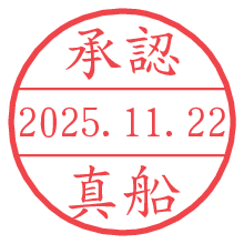 オプションの「電子透かし」をチェックし[生成]すると、見た目には分からないように、UNIXタイムスタンプを識別情報としてPNG形式の日付印に埋め込みます。 日付スタンプメーカーの使い方「部署」「名前」は最大8文字まで入力が可能です。「スタンプの色」を選択し、[生成]ボタン押下で印影画像が更新され、背景を透明に設定したPNG形式とPDF形式の印影画像がリンクからダウンロードできます。 オプションの「電子透かし」は、その性格上日付印ととても相性の良い付加サービスです。 別ページの「タイムスタンプと電子透かし」でも詳しく解説しますが、このオプションを追加することで、日付印が生成された日時に確かにその印が存在していることが証明されます。 ![]() 真船さんの電子印鑑が作れます。社内でのデータ書類閲覧確認用など、認印的な使い方のできる電子印鑑が作れます。 ![]() 古代文字で落款印が作れます。「落款スタンプメーカー」で作品を引き立たせる落款印が作れます。