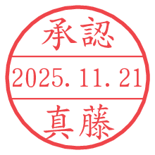 オプションの「電子透かし」をチェックし[生成]すると、見た目には分からないように、UNIXタイムスタンプを識別情報としてPNG形式の日付印に埋め込みます。 日付スタンプメーカーの使い方「部署」「名前」は最大8文字まで入力が可能です。「スタンプの色」を選択し、[生成]ボタン押下で印影画像が更新され、背景を透明に設定したPNG形式とPDF形式の印影画像がリンクからダウンロードできます。 オプションの「電子透かし」は、その性格上日付印ととても相性の良い付加サービスです。 別ページの「タイムスタンプと電子透かし」でも詳しく解説しますが、このオプションを追加することで、日付印が生成された日時に確かにその印が存在していることが証明されます。 ![]() 真藤さんの電子印鑑が作れます。社内でのデータ書類閲覧確認用など、認印的な使い方のできる電子印鑑が作れます。 ![]() 古代文字で落款印が作れます。「落款スタンプメーカー」で作品を引き立たせる落款印が作れます。