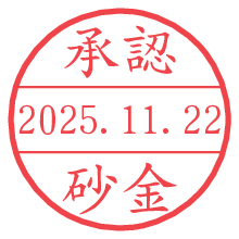 オプションの「電子透かし」をチェックし[生成]すると、見た目には分からないように、UNIXタイムスタンプを識別情報としてPNG形式の日付印に埋め込みます。 日付スタンプメーカーの使い方「部署」「名前」は最大8文字まで入力が可能です。「スタンプの色」を選択し、[生成]ボタン押下で印影画像が更新され、背景を透明に設定したPNG形式とPDF形式の印影画像がリンクからダウンロードできます。 オプションの「電子透かし」は、その性格上日付印ととても相性の良い付加サービスです。 別ページの「タイムスタンプと電子透かし」でも詳しく解説しますが、このオプションを追加することで、日付印が生成された日時に確かにその印が存在していることが証明されます。 ![]() 砂金さんの電子印鑑が作れます。社内でのデータ書類閲覧確認用など、認印的な使い方のできる電子印鑑が作れます。 ![]() 古代文字で落款印が作れます。「落款スタンプメーカー」で作品を引き立たせる落款印が作れます。
