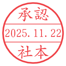 オプションの「電子透かし」をチェックし[生成]すると、見た目には分からないように、UNIXタイムスタンプを識別情報としてPNG形式の日付印に埋め込みます。 日付スタンプメーカーの使い方「部署」「名前」は最大8文字まで入力が可能です。「スタンプの色」を選択し、[生成]ボタン押下で印影画像が更新され、背景を透明に設定したPNG形式とPDF形式の印影画像がリンクからダウンロードできます。 オプションの「電子透かし」は、その性格上日付印ととても相性の良い付加サービスです。 別ページの「タイムスタンプと電子透かし」でも詳しく解説しますが、このオプションを追加することで、日付印が生成された日時に確かにその印が存在していることが証明されます。 ![]() 社本さんの電子印鑑が作れます。社内でのデータ書類閲覧確認用など、認印的な使い方のできる電子印鑑が作れます。 ![]() 古代文字で落款印が作れます。「落款スタンプメーカー」で作品を引き立たせる落款印が作れます。