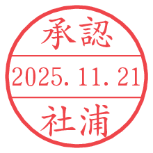 オプションの「電子透かし」をチェックし[生成]すると、見た目には分からないように、UNIXタイムスタンプを識別情報としてPNG形式の日付印に埋め込みます。 日付スタンプメーカーの使い方「部署」「名前」は最大8文字まで入力が可能です。「スタンプの色」を選択し、[生成]ボタン押下で印影画像が更新され、背景を透明に設定したPNG形式とPDF形式の印影画像がリンクからダウンロードできます。 オプションの「電子透かし」は、その性格上日付印ととても相性の良い付加サービスです。 別ページの「タイムスタンプと電子透かし」でも詳しく解説しますが、このオプションを追加することで、日付印が生成された日時に確かにその印が存在していることが証明されます。 ![]() 社浦さんの電子印鑑が作れます。社内でのデータ書類閲覧確認用など、認印的な使い方のできる電子印鑑が作れます。 ![]() 古代文字で落款印が作れます。「落款スタンプメーカー」で作品を引き立たせる落款印が作れます。