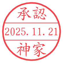 オプションの「電子透かし」をチェックし[生成]すると、見た目には分からないように、UNIXタイムスタンプを識別情報としてPNG形式の日付印に埋め込みます。 日付スタンプメーカーの使い方「部署」「名前」は最大8文字まで入力が可能です。「スタンプの色」を選択し、[生成]ボタン押下で印影画像が更新され、背景を透明に設定したPNG形式とPDF形式の印影画像がリンクからダウンロードできます。 オプションの「電子透かし」は、その性格上日付印ととても相性の良い付加サービスです。 別ページの「タイムスタンプと電子透かし」でも詳しく解説しますが、このオプションを追加することで、日付印が生成された日時に確かにその印が存在していることが証明されます。 ![]() 神家さんの電子印鑑が作れます。社内でのデータ書類閲覧確認用など、認印的な使い方のできる電子印鑑が作れます。 ![]() 古代文字で落款印が作れます。「落款スタンプメーカー」で作品を引き立たせる落款印が作れます。