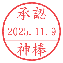 オプションの「電子透かし」をチェックし[生成]すると、見た目には分からないように、UNIXタイムスタンプを識別情報としてPNG形式の日付印に埋め込みます。 日付スタンプメーカーの使い方「部署」「名前」は最大8文字まで入力が可能です。「スタンプの色」を選択し、[生成]ボタン押下で印影画像が更新され、背景を透明に設定したPNG形式とPDF形式の印影画像がリンクからダウンロードできます。 オプションの「電子透かし」は、その性格上日付印ととても相性の良い付加サービスです。 別ページの「タイムスタンプと電子透かし」でも詳しく解説しますが、このオプションを追加することで、日付印が生成された日時に確かにその印が存在していることが証明されます。 ![]() 神棒さんの電子印鑑が作れます。社内でのデータ書類閲覧確認用など、認印的な使い方のできる電子印鑑が作れます。 ![]() 古代文字で落款印が作れます。「落款スタンプメーカー」で作品を引き立たせる落款印が作れます。