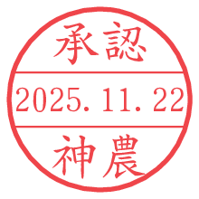オプションの「電子透かし」をチェックし[生成]すると、見た目には分からないように、UNIXタイムスタンプを識別情報としてPNG形式の日付印に埋め込みます。 日付スタンプメーカーの使い方「部署」「名前」は最大8文字まで入力が可能です。「スタンプの色」を選択し、[生成]ボタン押下で印影画像が更新され、背景を透明に設定したPNG形式とPDF形式の印影画像がリンクからダウンロードできます。 オプションの「電子透かし」は、その性格上日付印ととても相性の良い付加サービスです。 別ページの「タイムスタンプと電子透かし」でも詳しく解説しますが、このオプションを追加することで、日付印が生成された日時に確かにその印が存在していることが証明されます。 ![]() 神農さんの電子印鑑が作れます。社内でのデータ書類閲覧確認用など、認印的な使い方のできる電子印鑑が作れます。 ![]() 古代文字で落款印が作れます。「落款スタンプメーカー」で作品を引き立たせる落款印が作れます。