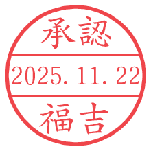 オプションの「電子透かし」をチェックし[生成]すると、見た目には分からないように、UNIXタイムスタンプを識別情報としてPNG形式の日付印に埋め込みます。 日付スタンプメーカーの使い方「部署」「名前」は最大8文字まで入力が可能です。「スタンプの色」を選択し、[生成]ボタン押下で印影画像が更新され、背景を透明に設定したPNG形式とPDF形式の印影画像がリンクからダウンロードできます。 オプションの「電子透かし」は、その性格上日付印ととても相性の良い付加サービスです。 別ページの「タイムスタンプと電子透かし」でも詳しく解説しますが、このオプションを追加することで、日付印が生成された日時に確かにその印が存在していることが証明されます。 ![]() 福吉さんの電子印鑑が作れます。社内でのデータ書類閲覧確認用など、認印的な使い方のできる電子印鑑が作れます。 ![]() 古代文字で落款印が作れます。「落款スタンプメーカー」で作品を引き立たせる落款印が作れます。
