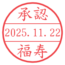 オプションの「電子透かし」をチェックし[生成]すると、見た目には分からないように、UNIXタイムスタンプを識別情報としてPNG形式の日付印に埋め込みます。 日付スタンプメーカーの使い方「部署」「名前」は最大8文字まで入力が可能です。「スタンプの色」を選択し、[生成]ボタン押下で印影画像が更新され、背景を透明に設定したPNG形式とPDF形式の印影画像がリンクからダウンロードできます。 オプションの「電子透かし」は、その性格上日付印ととても相性の良い付加サービスです。 別ページの「タイムスタンプと電子透かし」でも詳しく解説しますが、このオプションを追加することで、日付印が生成された日時に確かにその印が存在していることが証明されます。 ![]() 福寿さんの電子印鑑が作れます。社内でのデータ書類閲覧確認用など、認印的な使い方のできる電子印鑑が作れます。 ![]() 古代文字で落款印が作れます。「落款スタンプメーカー」で作品を引き立たせる落款印が作れます。