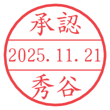 オプションの「電子透かし」をチェックし[生成]すると、見た目には分からないように、UNIXタイムスタンプを識別情報としてPNG形式の日付印に埋め込みます。 日付スタンプメーカーの使い方「部署」「名前」は最大8文字まで入力が可能です。「スタンプの色」を選択し、[生成]ボタン押下で印影画像が更新され、背景を透明に設定したPNG形式とPDF形式の印影画像がリンクからダウンロードできます。 オプションの「電子透かし」は、その性格上日付印ととても相性の良い付加サービスです。 別ページの「タイムスタンプと電子透かし」でも詳しく解説しますが、このオプションを追加することで、日付印が生成された日時に確かにその印が存在していることが証明されます。 ![]() 秀谷さんの電子印鑑が作れます。社内でのデータ書類閲覧確認用など、認印的な使い方のできる電子印鑑が作れます。 ![]() 古代文字で落款印が作れます。「落款スタンプメーカー」で作品を引き立たせる落款印が作れます。