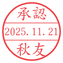 オプションの「電子透かし」をチェックし[生成]すると、見た目には分からないように、UNIXタイムスタンプを識別情報としてPNG形式の日付印に埋め込みます。 日付スタンプメーカーの使い方「部署」「名前」は最大8文字まで入力が可能です。「スタンプの色」を選択し、[生成]ボタン押下で印影画像が更新され、背景を透明に設定したPNG形式とPDF形式の印影画像がリンクからダウンロードできます。 オプションの「電子透かし」は、その性格上日付印ととても相性の良い付加サービスです。 別ページの「タイムスタンプと電子透かし」でも詳しく解説しますが、このオプションを追加することで、日付印が生成された日時に確かにその印が存在していることが証明されます。 ![]() 秋友さんの電子印鑑が作れます。社内でのデータ書類閲覧確認用など、認印的な使い方のできる電子印鑑が作れます。 ![]() 古代文字で落款印が作れます。「落款スタンプメーカー」で作品を引き立たせる落款印が作れます。