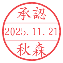 オプションの「電子透かし」をチェックし[生成]すると、見た目には分からないように、UNIXタイムスタンプを識別情報としてPNG形式の日付印に埋め込みます。 日付スタンプメーカーの使い方「部署」「名前」は最大8文字まで入力が可能です。「スタンプの色」を選択し、[生成]ボタン押下で印影画像が更新され、背景を透明に設定したPNG形式とPDF形式の印影画像がリンクからダウンロードできます。 オプションの「電子透かし」は、その性格上日付印ととても相性の良い付加サービスです。 別ページの「タイムスタンプと電子透かし」でも詳しく解説しますが、このオプションを追加することで、日付印が生成された日時に確かにその印が存在していることが証明されます。 ![]() 秋森さんの電子印鑑が作れます。社内でのデータ書類閲覧確認用など、認印的な使い方のできる電子印鑑が作れます。 ![]() 古代文字で落款印が作れます。「落款スタンプメーカー」で作品を引き立たせる落款印が作れます。