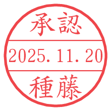 オプションの「電子透かし」をチェックし[生成]すると、見た目には分からないように、UNIXタイムスタンプを識別情報としてPNG形式の日付印に埋め込みます。 日付スタンプメーカーの使い方「部署」「名前」は最大8文字まで入力が可能です。「スタンプの色」を選択し、[生成]ボタン押下で印影画像が更新され、背景を透明に設定したPNG形式とPDF形式の印影画像がリンクからダウンロードできます。 オプションの「電子透かし」は、その性格上日付印ととても相性の良い付加サービスです。 別ページの「タイムスタンプと電子透かし」でも詳しく解説しますが、このオプションを追加することで、日付印が生成された日時に確かにその印が存在していることが証明されます。 ![]() 種藤さんの電子印鑑が作れます。社内でのデータ書類閲覧確認用など、認印的な使い方のできる電子印鑑が作れます。 ![]() 古代文字で落款印が作れます。「落款スタンプメーカー」で作品を引き立たせる落款印が作れます。