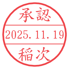 オプションの「電子透かし」をチェックし[生成]すると、見た目には分からないように、UNIXタイムスタンプを識別情報としてPNG形式の日付印に埋め込みます。 日付スタンプメーカーの使い方「部署」「名前」は最大8文字まで入力が可能です。「スタンプの色」を選択し、[生成]ボタン押下で印影画像が更新され、背景を透明に設定したPNG形式とPDF形式の印影画像がリンクからダウンロードできます。 オプションの「電子透かし」は、その性格上日付印ととても相性の良い付加サービスです。 別ページの「タイムスタンプと電子透かし」でも詳しく解説しますが、このオプションを追加することで、日付印が生成された日時に確かにその印が存在していることが証明されます。 ![]() 稲次さんの電子印鑑が作れます。社内でのデータ書類閲覧確認用など、認印的な使い方のできる電子印鑑が作れます。 ![]() 古代文字で落款印が作れます。「落款スタンプメーカー」で作品を引き立たせる落款印が作れます。