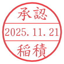 オプションの「電子透かし」をチェックし[生成]すると、見た目には分からないように、UNIXタイムスタンプを識別情報としてPNG形式の日付印に埋め込みます。 日付スタンプメーカーの使い方「部署」「名前」は最大8文字まで入力が可能です。「スタンプの色」を選択し、[生成]ボタン押下で印影画像が更新され、背景を透明に設定したPNG形式とPDF形式の印影画像がリンクからダウンロードできます。 オプションの「電子透かし」は、その性格上日付印ととても相性の良い付加サービスです。 別ページの「タイムスタンプと電子透かし」でも詳しく解説しますが、このオプションを追加することで、日付印が生成された日時に確かにその印が存在していることが証明されます。 ![]() 稲積さんの電子印鑑が作れます。社内でのデータ書類閲覧確認用など、認印的な使い方のできる電子印鑑が作れます。 ![]() 古代文字で落款印が作れます。「落款スタンプメーカー」で作品を引き立たせる落款印が作れます。