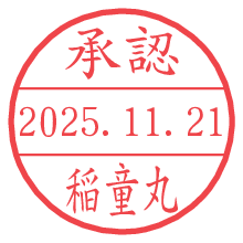 オプションの「電子透かし」をチェックし[生成]すると、見た目には分からないように、UNIXタイムスタンプを識別情報としてPNG形式の日付印に埋め込みます。 日付スタンプメーカーの使い方「部署」「名前」は最大8文字まで入力が可能です。「スタンプの色」を選択し、[生成]ボタン押下で印影画像が更新され、背景を透明に設定したPNG形式とPDF形式の印影画像がリンクからダウンロードできます。 オプションの「電子透かし」は、その性格上日付印ととても相性の良い付加サービスです。 別ページの「タイムスタンプと電子透かし」でも詳しく解説しますが、このオプションを追加することで、日付印が生成された日時に確かにその印が存在していることが証明されます。 ![]() 稲童丸さんの電子印鑑が作れます。社内でのデータ書類閲覧確認用など、認印的な使い方のできる電子印鑑が作れます。 ![]() 古代文字で落款印が作れます。「落款スタンプメーカー」で作品を引き立たせる落款印が作れます。