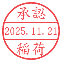 オプションの「電子透かし」をチェックし[生成]すると、見た目には分からないように、UNIXタイムスタンプを識別情報としてPNG形式の日付印に埋め込みます。 日付スタンプメーカーの使い方「部署」「名前」は最大8文字まで入力が可能です。「スタンプの色」を選択し、[生成]ボタン押下で印影画像が更新され、背景を透明に設定したPNG形式とPDF形式の印影画像がリンクからダウンロードできます。 オプションの「電子透かし」は、その性格上日付印ととても相性の良い付加サービスです。 別ページの「タイムスタンプと電子透かし」でも詳しく解説しますが、このオプションを追加することで、日付印が生成された日時に確かにその印が存在していることが証明されます。 ![]() 稲荷さんの電子印鑑が作れます。社内でのデータ書類閲覧確認用など、認印的な使い方のできる電子印鑑が作れます。 ![]() 古代文字で落款印が作れます。「落款スタンプメーカー」で作品を引き立たせる落款印が作れます。