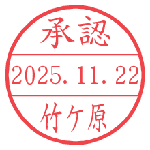 オプションの「電子透かし」をチェックし[生成]すると、見た目には分からないように、UNIXタイムスタンプを識別情報としてPNG形式の日付印に埋め込みます。 日付スタンプメーカーの使い方「部署」「名前」は最大8文字まで入力が可能です。「スタンプの色」を選択し、[生成]ボタン押下で印影画像が更新され、背景を透明に設定したPNG形式とPDF形式の印影画像がリンクからダウンロードできます。 オプションの「電子透かし」は、その性格上日付印ととても相性の良い付加サービスです。 別ページの「タイムスタンプと電子透かし」でも詳しく解説しますが、このオプションを追加することで、日付印が生成された日時に確かにその印が存在していることが証明されます。 ![]() 竹ケ原さんの電子印鑑が作れます。社内でのデータ書類閲覧確認用など、認印的な使い方のできる電子印鑑が作れます。 ![]() 古代文字で落款印が作れます。「落款スタンプメーカー」で作品を引き立たせる落款印が作れます。