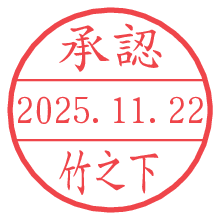 オプションの「電子透かし」をチェックし[生成]すると、見た目には分からないように、UNIXタイムスタンプを識別情報としてPNG形式の日付印に埋め込みます。 日付スタンプメーカーの使い方「部署」「名前」は最大8文字まで入力が可能です。「スタンプの色」を選択し、[生成]ボタン押下で印影画像が更新され、背景を透明に設定したPNG形式とPDF形式の印影画像がリンクからダウンロードできます。 オプションの「電子透かし」は、その性格上日付印ととても相性の良い付加サービスです。 別ページの「タイムスタンプと電子透かし」でも詳しく解説しますが、このオプションを追加することで、日付印が生成された日時に確かにその印が存在していることが証明されます。 ![]() 竹之下さんの電子印鑑が作れます。社内でのデータ書類閲覧確認用など、認印的な使い方のできる電子印鑑が作れます。 ![]() 古代文字で落款印が作れます。「落款スタンプメーカー」で作品を引き立たせる落款印が作れます。