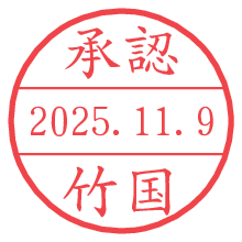 オプションの「電子透かし」をチェックし[生成]すると、見た目には分からないように、UNIXタイムスタンプを識別情報としてPNG形式の日付印に埋め込みます。 日付スタンプメーカーの使い方「部署」「名前」は最大8文字まで入力が可能です。「スタンプの色」を選択し、[生成]ボタン押下で印影画像が更新され、背景を透明に設定したPNG形式とPDF形式の印影画像がリンクからダウンロードできます。 オプションの「電子透かし」は、その性格上日付印ととても相性の良い付加サービスです。 別ページの「タイムスタンプと電子透かし」でも詳しく解説しますが、このオプションを追加することで、日付印が生成された日時に確かにその印が存在していることが証明されます。 ![]() 竹国さんの電子印鑑が作れます。社内でのデータ書類閲覧確認用など、認印的な使い方のできる電子印鑑が作れます。 ![]() 古代文字で落款印が作れます。「落款スタンプメーカー」で作品を引き立たせる落款印が作れます。
