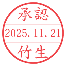 オプションの「電子透かし」をチェックし[生成]すると、見た目には分からないように、UNIXタイムスタンプを識別情報としてPNG形式の日付印に埋め込みます。 日付スタンプメーカーの使い方「部署」「名前」は最大8文字まで入力が可能です。「スタンプの色」を選択し、[生成]ボタン押下で印影画像が更新され、背景を透明に設定したPNG形式とPDF形式の印影画像がリンクからダウンロードできます。 オプションの「電子透かし」は、その性格上日付印ととても相性の良い付加サービスです。 別ページの「タイムスタンプと電子透かし」でも詳しく解説しますが、このオプションを追加することで、日付印が生成された日時に確かにその印が存在していることが証明されます。 ![]() 竹生さんの電子印鑑が作れます。社内でのデータ書類閲覧確認用など、認印的な使い方のできる電子印鑑が作れます。 ![]() 古代文字で落款印が作れます。「落款スタンプメーカー」で作品を引き立たせる落款印が作れます。