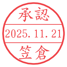 オプションの「電子透かし」をチェックし[生成]すると、見た目には分からないように、UNIXタイムスタンプを識別情報としてPNG形式の日付印に埋め込みます。 日付スタンプメーカーの使い方「部署」「名前」は最大8文字まで入力が可能です。「スタンプの色」を選択し、[生成]ボタン押下で印影画像が更新され、背景を透明に設定したPNG形式とPDF形式の印影画像がリンクからダウンロードできます。 オプションの「電子透かし」は、その性格上日付印ととても相性の良い付加サービスです。 別ページの「タイムスタンプと電子透かし」でも詳しく解説しますが、このオプションを追加することで、日付印が生成された日時に確かにその印が存在していることが証明されます。 ![]() 笠倉さんの電子印鑑が作れます。社内でのデータ書類閲覧確認用など、認印的な使い方のできる電子印鑑が作れます。 ![]() 古代文字で落款印が作れます。「落款スタンプメーカー」で作品を引き立たせる落款印が作れます。