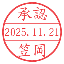 オプションの「電子透かし」をチェックし[生成]すると、見た目には分からないように、UNIXタイムスタンプを識別情報としてPNG形式の日付印に埋め込みます。 日付スタンプメーカーの使い方「部署」「名前」は最大8文字まで入力が可能です。「スタンプの色」を選択し、[生成]ボタン押下で印影画像が更新され、背景を透明に設定したPNG形式とPDF形式の印影画像がリンクからダウンロードできます。 オプションの「電子透かし」は、その性格上日付印ととても相性の良い付加サービスです。 別ページの「タイムスタンプと電子透かし」でも詳しく解説しますが、このオプションを追加することで、日付印が生成された日時に確かにその印が存在していることが証明されます。 ![]() 笠岡さんの電子印鑑が作れます。社内でのデータ書類閲覧確認用など、認印的な使い方のできる電子印鑑が作れます。 ![]() 古代文字で落款印が作れます。「落款スタンプメーカー」で作品を引き立たせる落款印が作れます。
